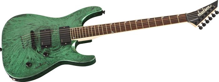 Elektrická kytara Jackson MG série, snímače: 2x aktivní humbucker original EMG model 85 u krku model 81 u kobylky, pevná kobylka.